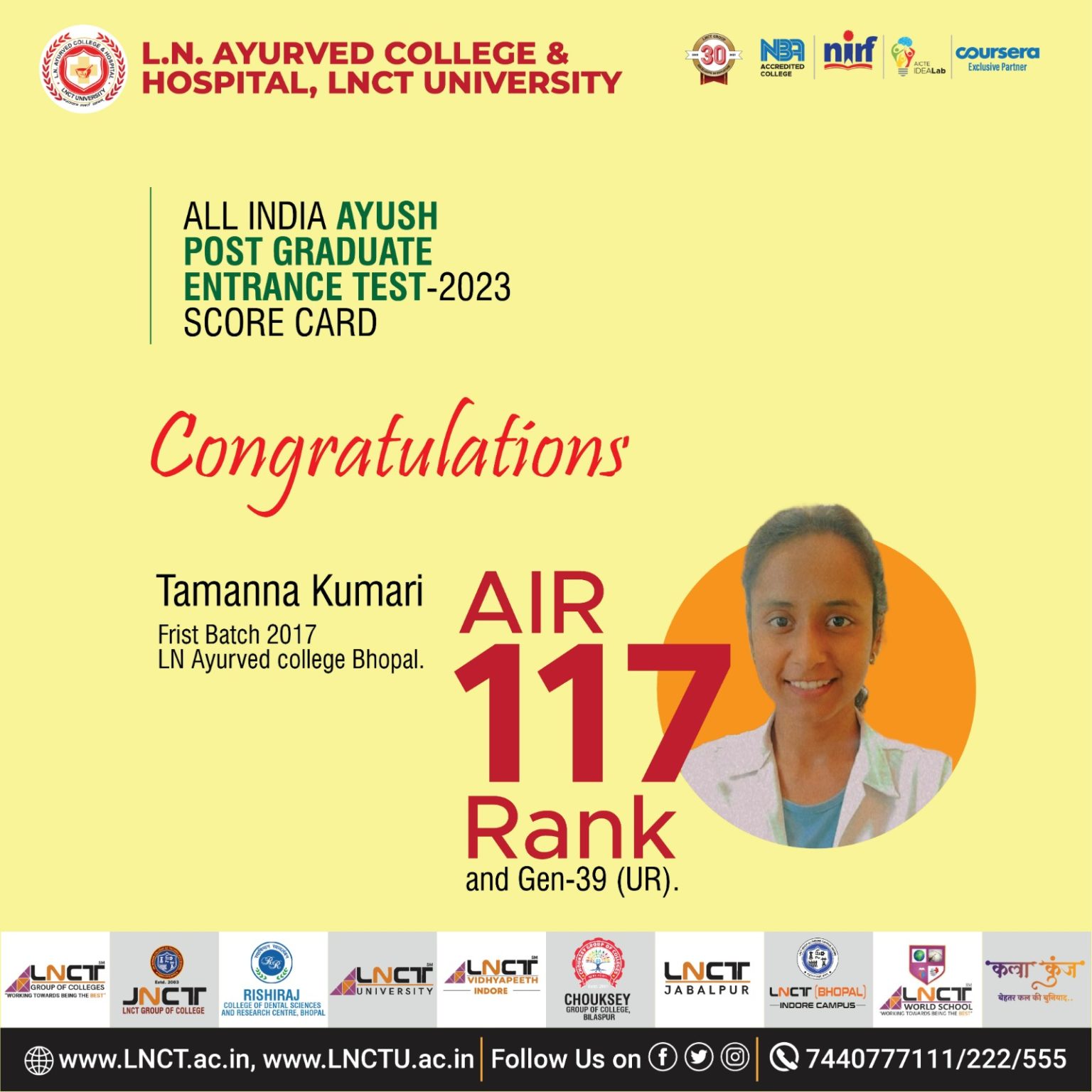 Congratulations Tamanna Kumari for securing AIR 117 Rank and Gen-39 (UR ...