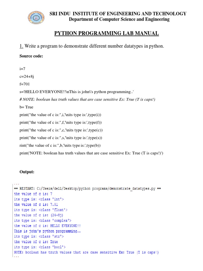 Python Programming Lab Manual: Demonstrating Number Data Types | Course ...