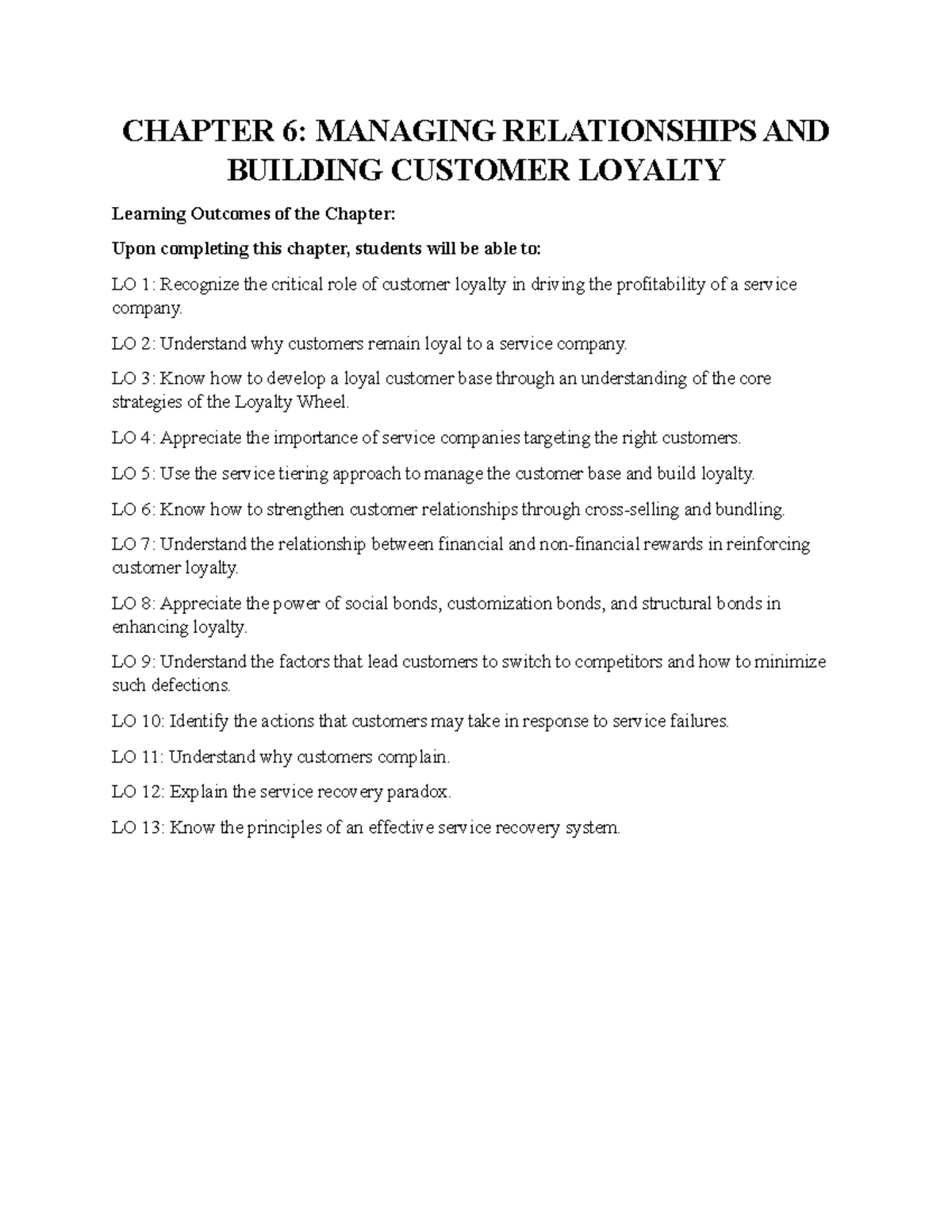 CHAPTER 6: MANAGING CUSTOMER LOYALTY & RELATIONSHIPS (Course Code ...