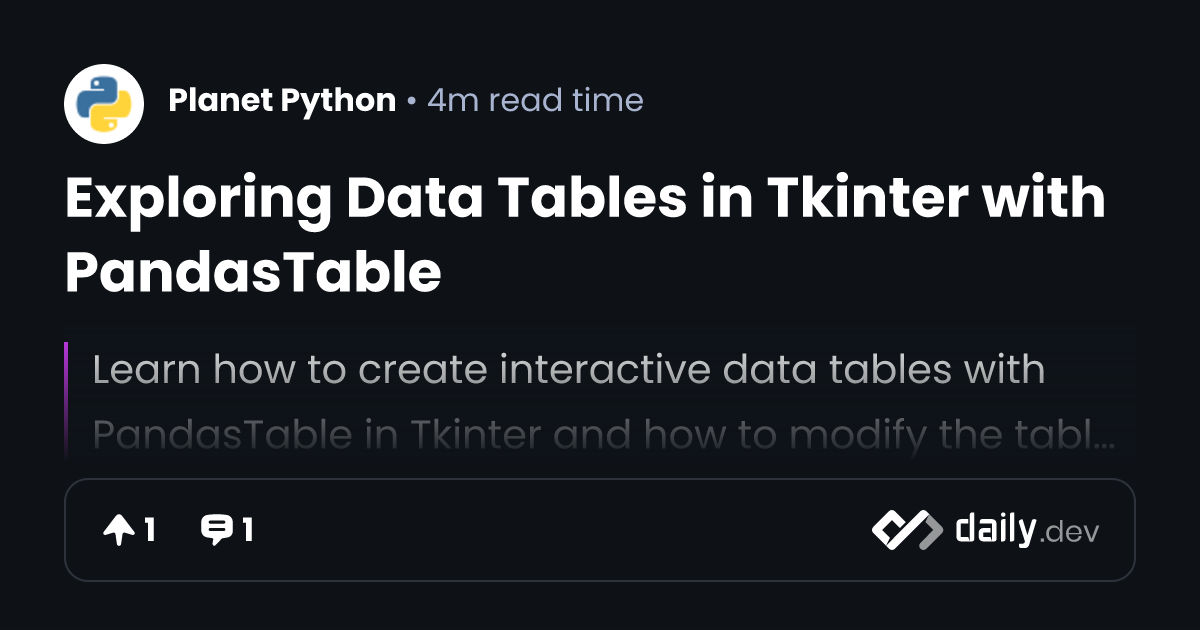 Exploring Data Tables in Tkinter with PandasTable | daily.dev