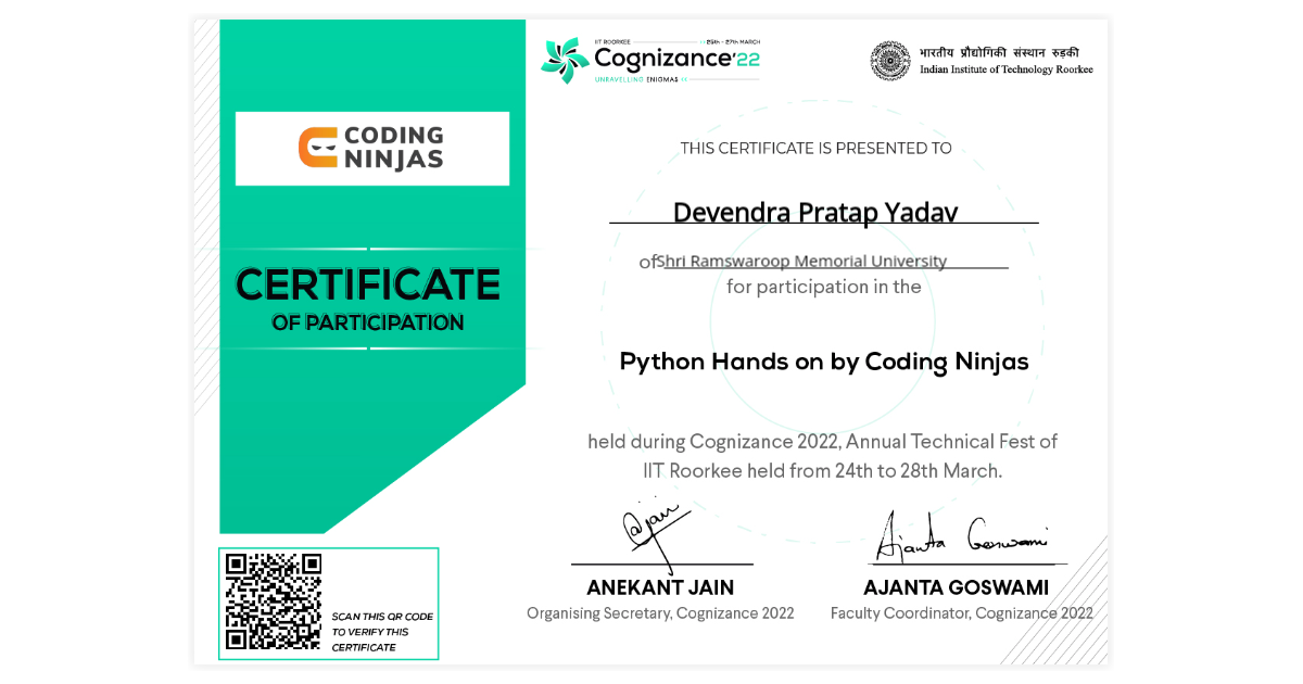 Devendra Pratap Yadav | Workshop Certificate of Python Hands On by ...