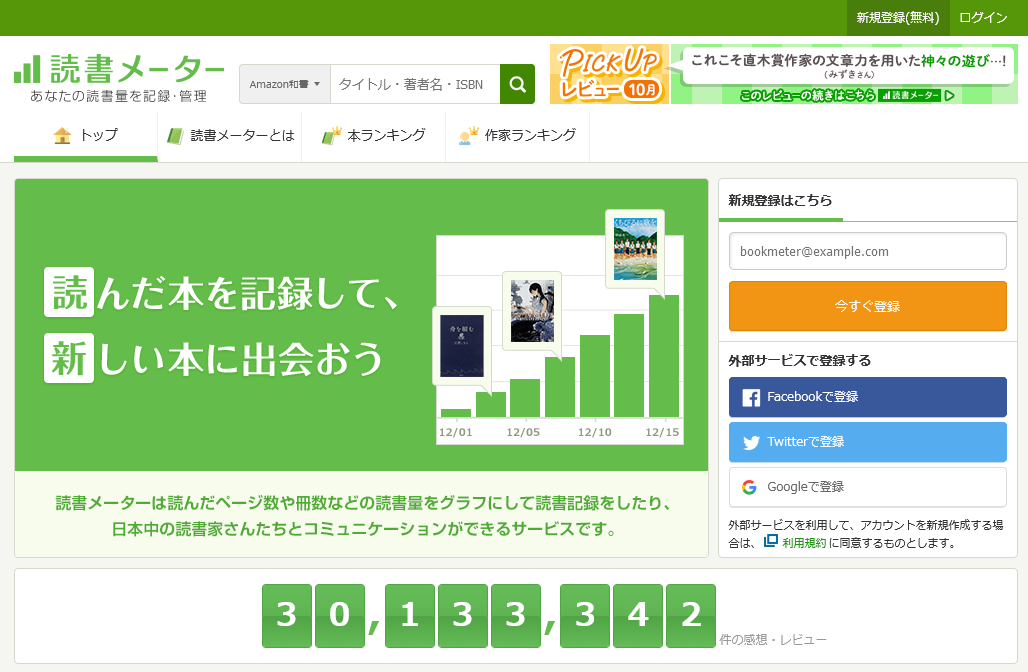 「読書メーター」の投稿レビュー数、450万件を突破 - ITmedia eBook USER
