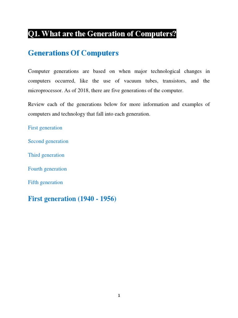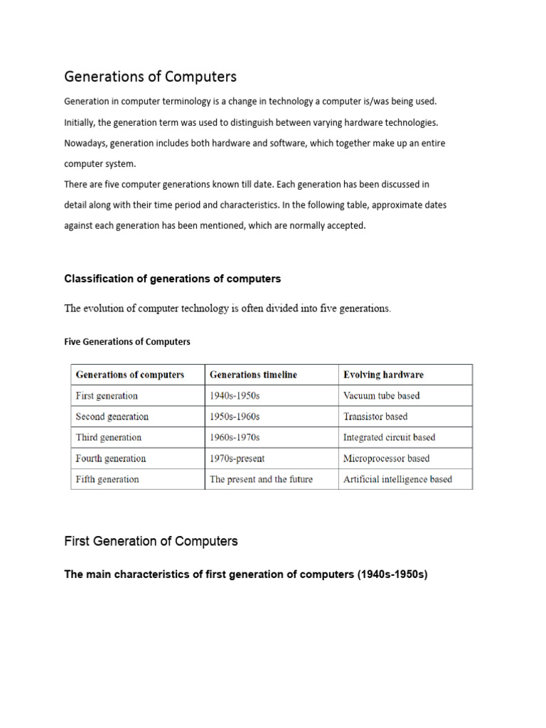 Generations of Computers: A Comprehensive Overview of Systems - Studocu