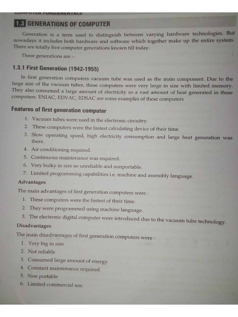 Generation of Computer 1st to 5th with Pictures, Download PDF