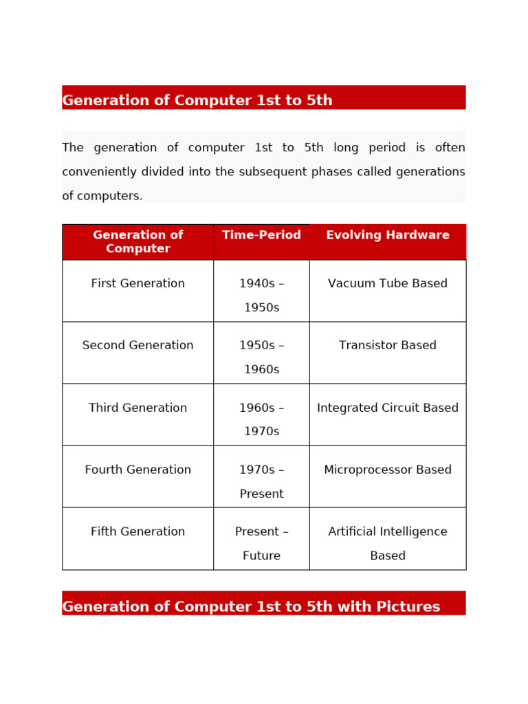 Based on this image's title: “Generation of Computer 1st to 5th with Pictures, Download PDF”
