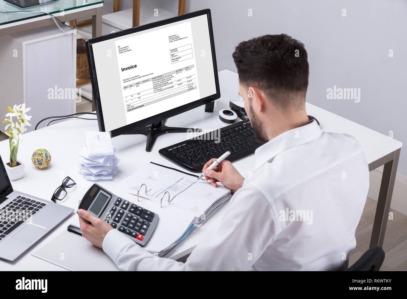 Bookkeeper Accountant Calculating Tax Invoice On Office Computer Stock ...