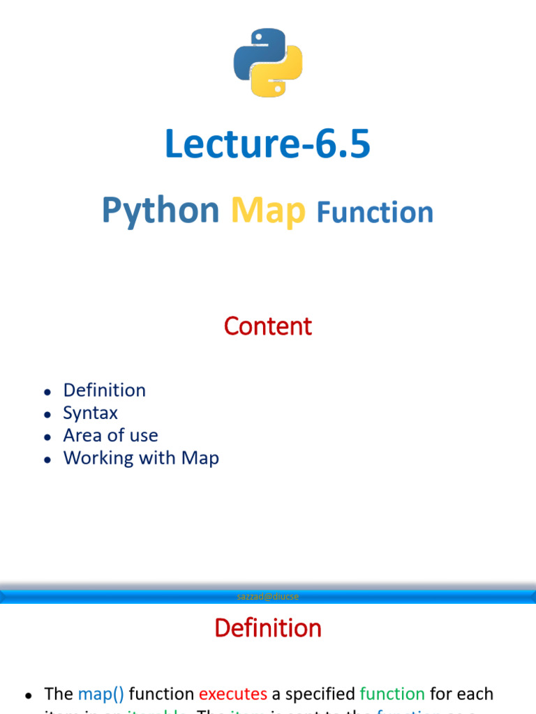 Based on this image's title: “Lecture 6.5 - Python Map Function | PDF”