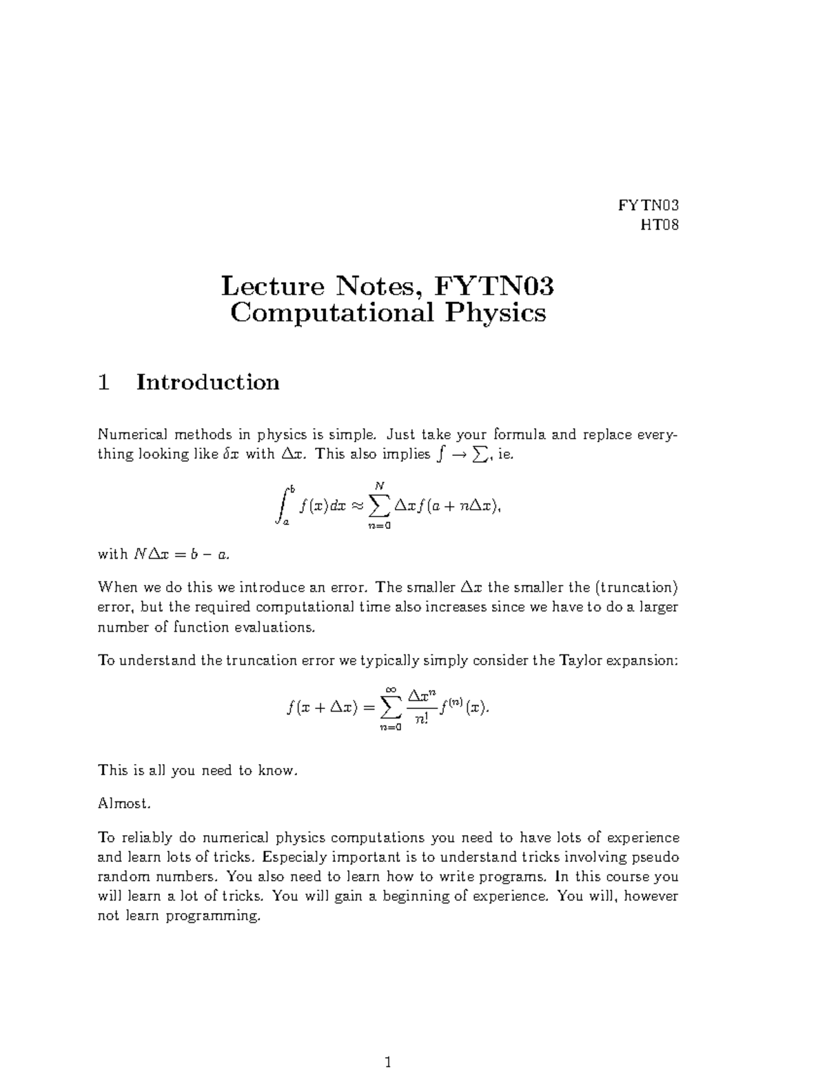 Computational physics Notes - FYTN HT Lecture Notes, FYTN Computational ...