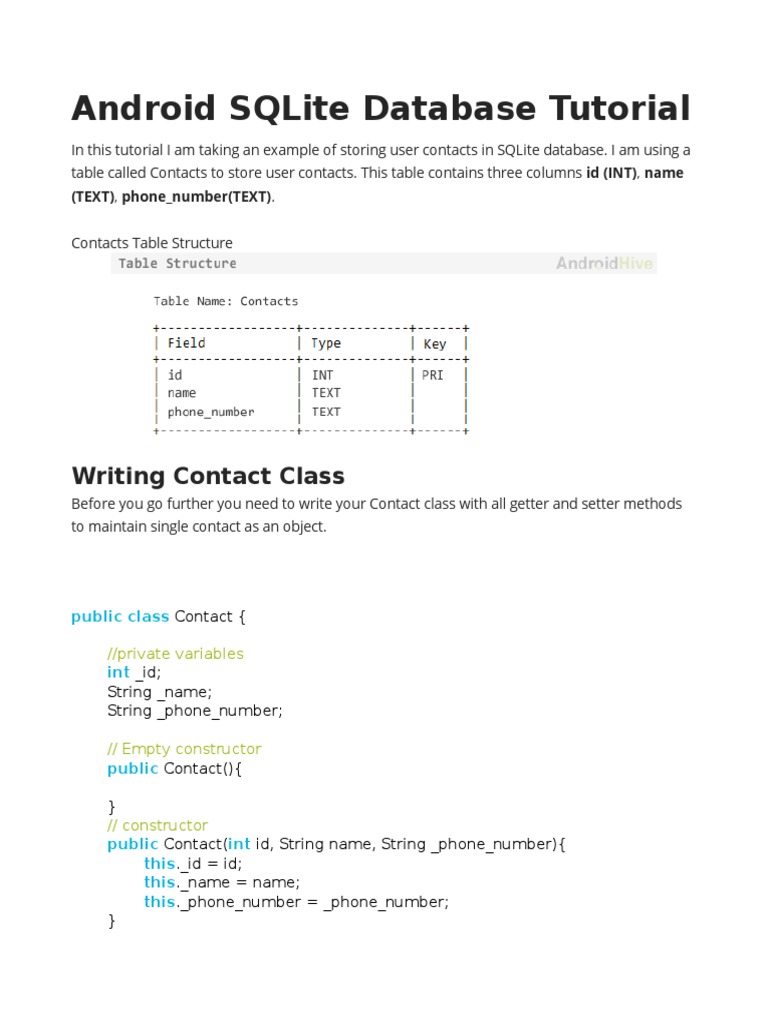 Android SQLite Database Tutorial | PDF | Databases | Android (Operating ...