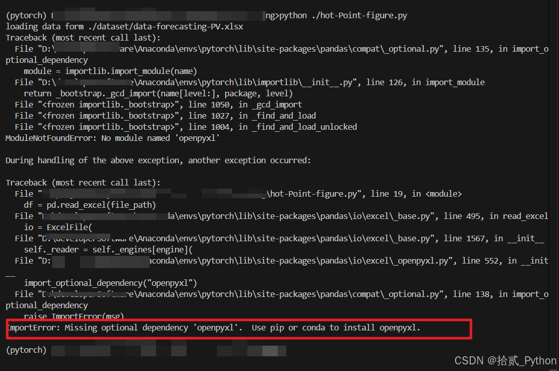 【python | pytorch】 openpyxl不存在:ImportError: Missing optional dependency ...