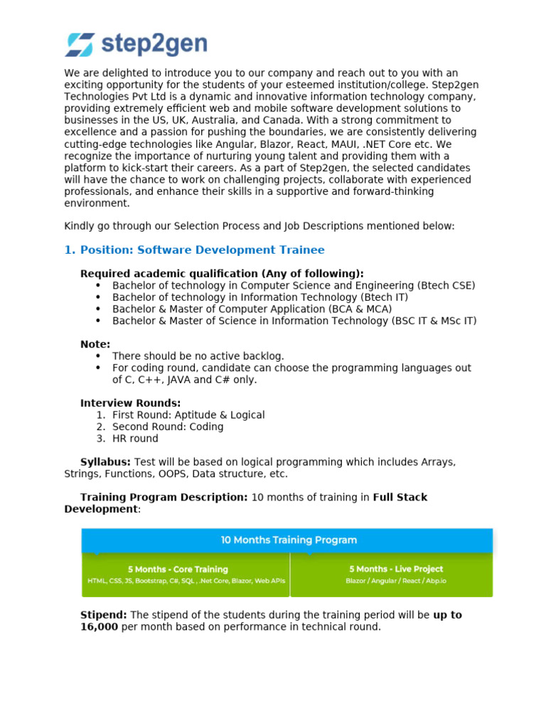 Join Our Campus Placement Drive for a Software Developer Internship ...