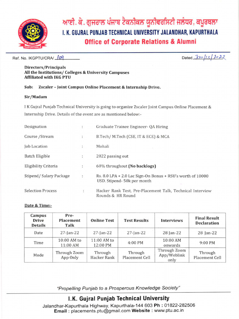 Joint Campus Placement Drive by at CGC Gharuan | PDF
