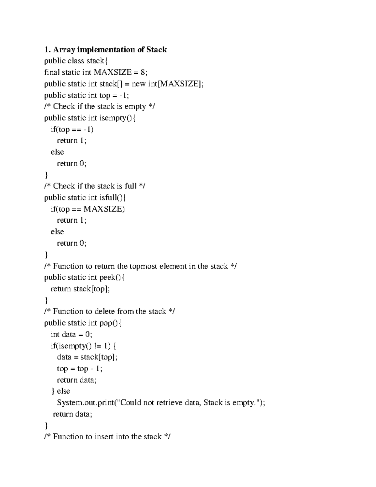 Data Structures and Algorithms Practicals - 225C41: Stack & Queue - Studocu