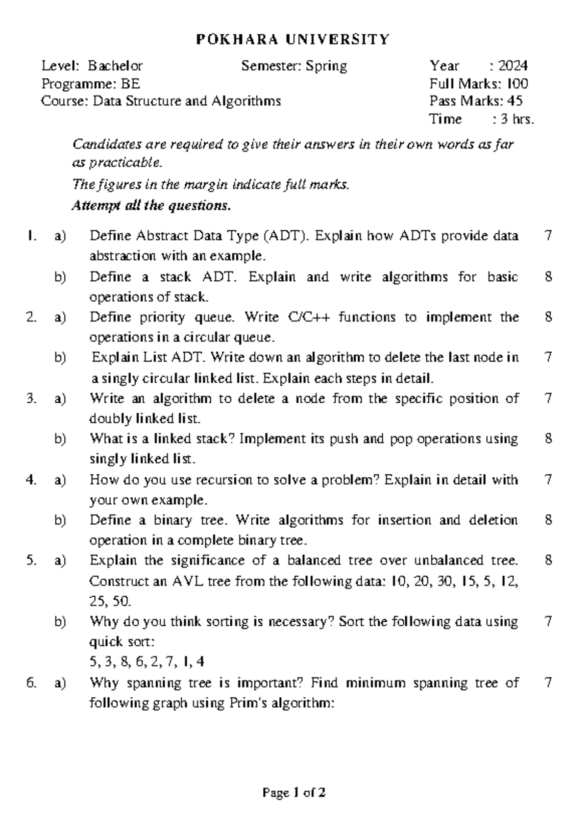 DSA 2024 Spring Final Exam Questions and Guidelines - Studocu