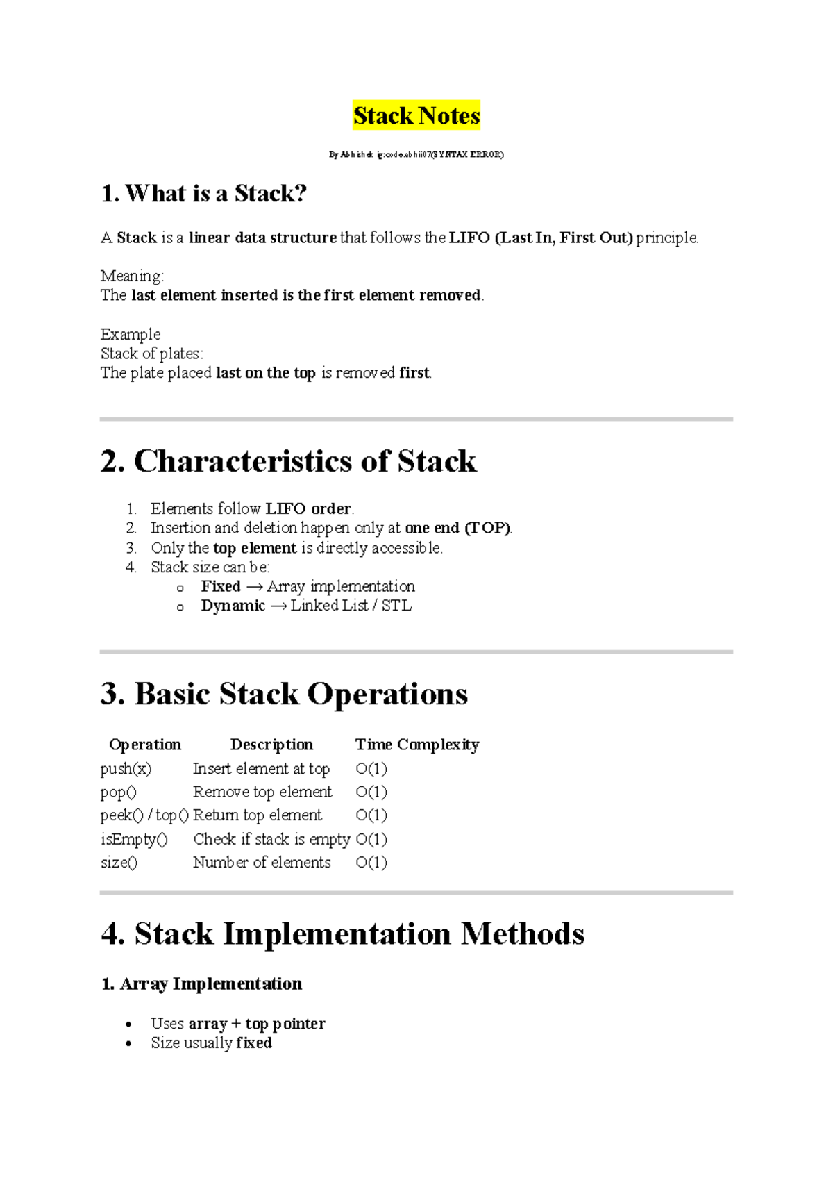 Stack Data Structure Overview and Applications (CS101) - Studocu