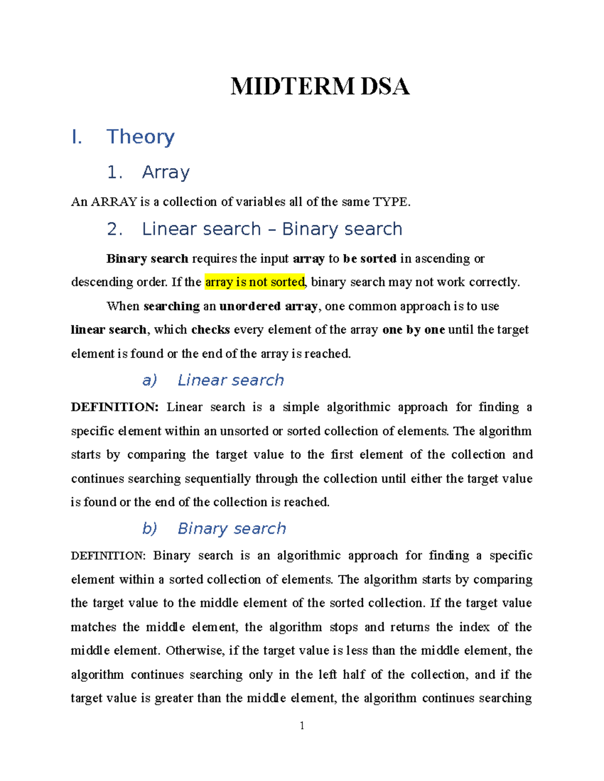 MIDTERM DSA I: Array Searching & Sorting Algorithms - Studocu