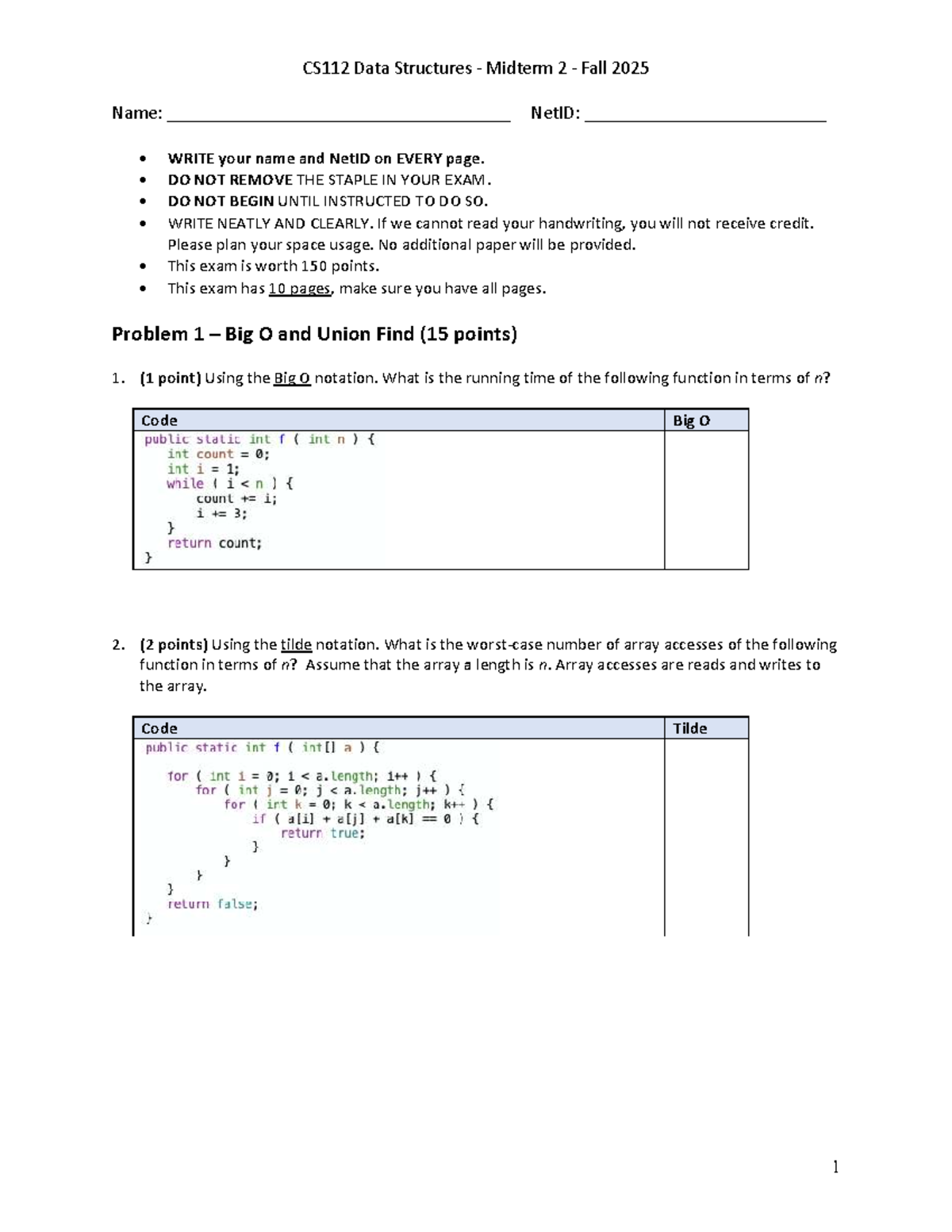 CS112 Data Structures Midterm 2 Exam - Fall 2025 - Studocu