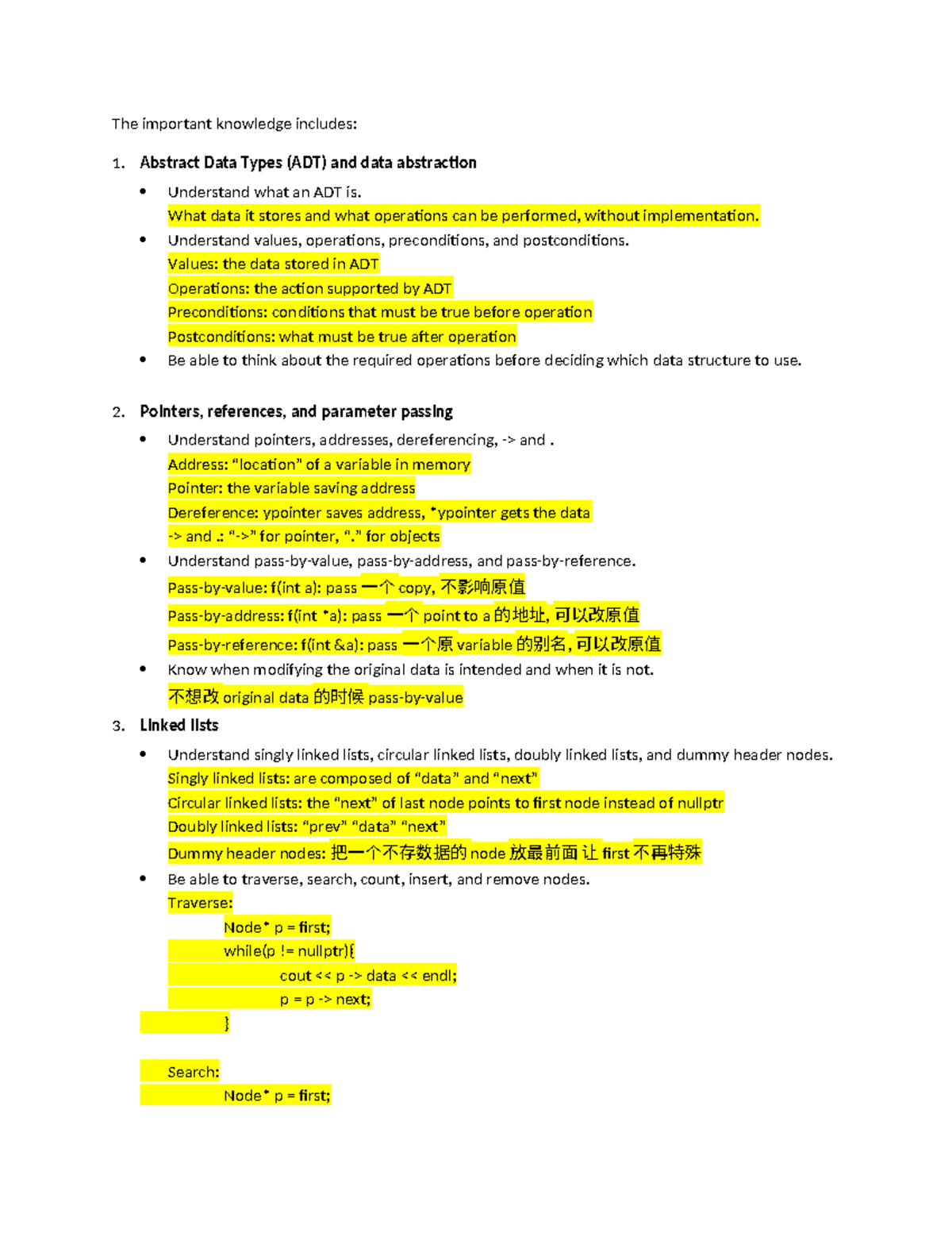 Linear Data Structures (CS101) Study Notes and Key Concepts - Studocu