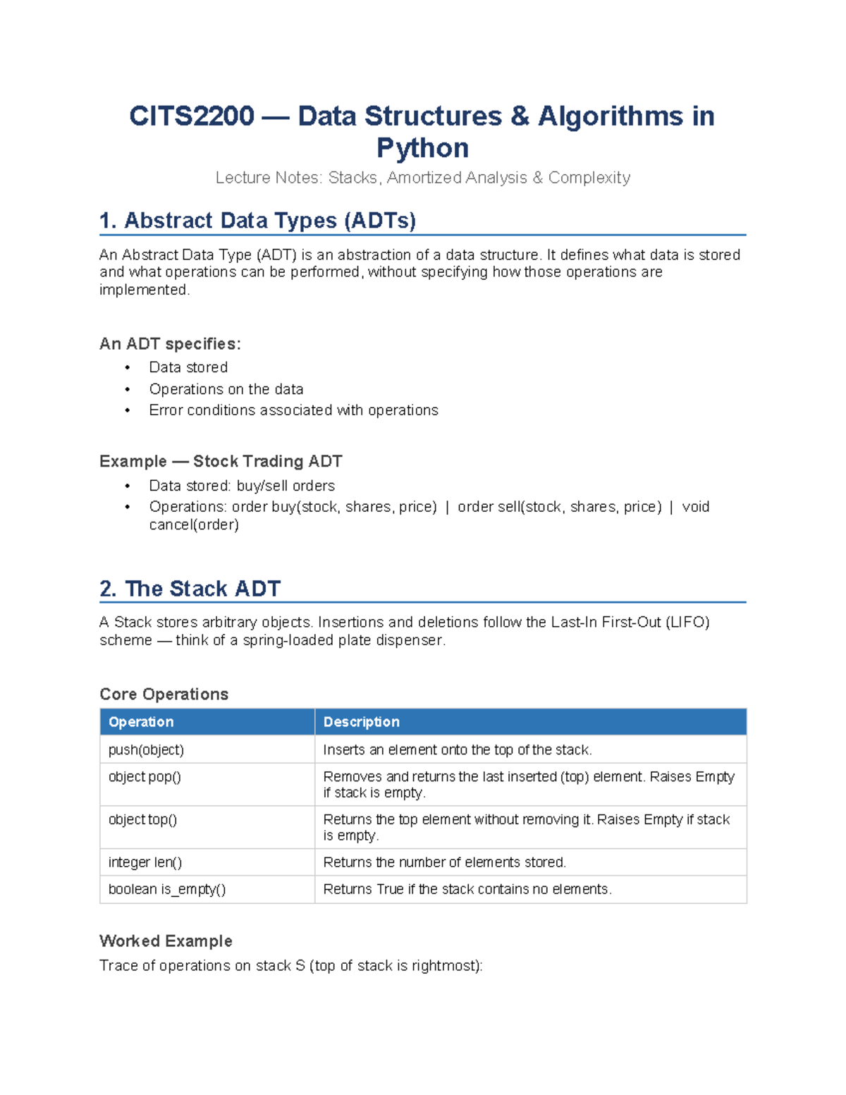 CITS2200 Lecture Notes: Data Structures & Algorithms in Python - Studocu
