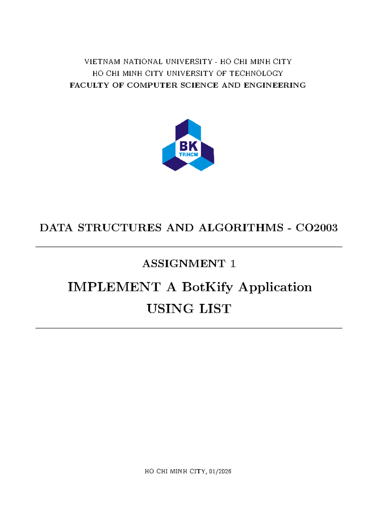 Data Structures and Algorithms CO2003 Assignment 1: BotKify App ...