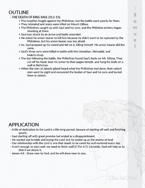 1 Samuel 31 Summary - 5 Minute Bible Study — 2BeLikeChrist