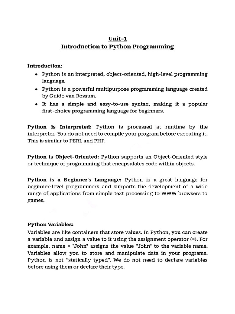 Based on this image's title: “UNIT 1 Python | PDF”