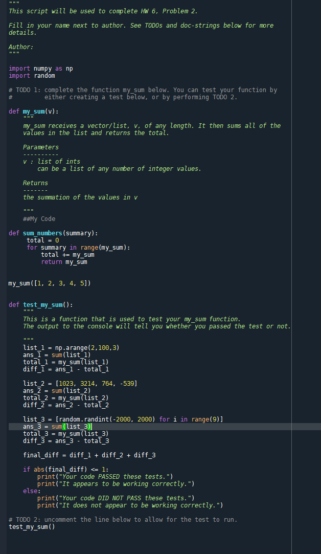 2. (5 pts) Complete the function in HW_6_sum_function | Chegg.com