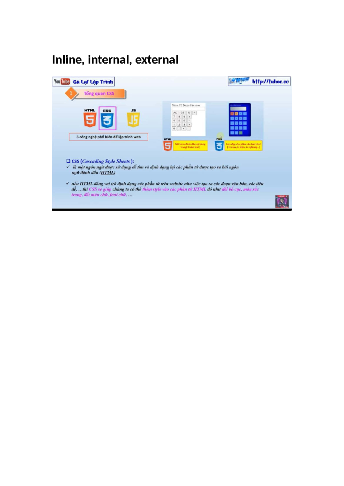Inline, Internal, External CSS
