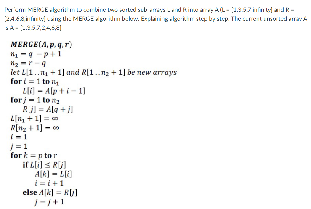 Solved Perform MERGE algorithm to combine two sorted | Chegg.com