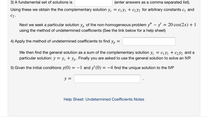 Solved 3) A fundamental set of solutions is (enter answers | Chegg.com