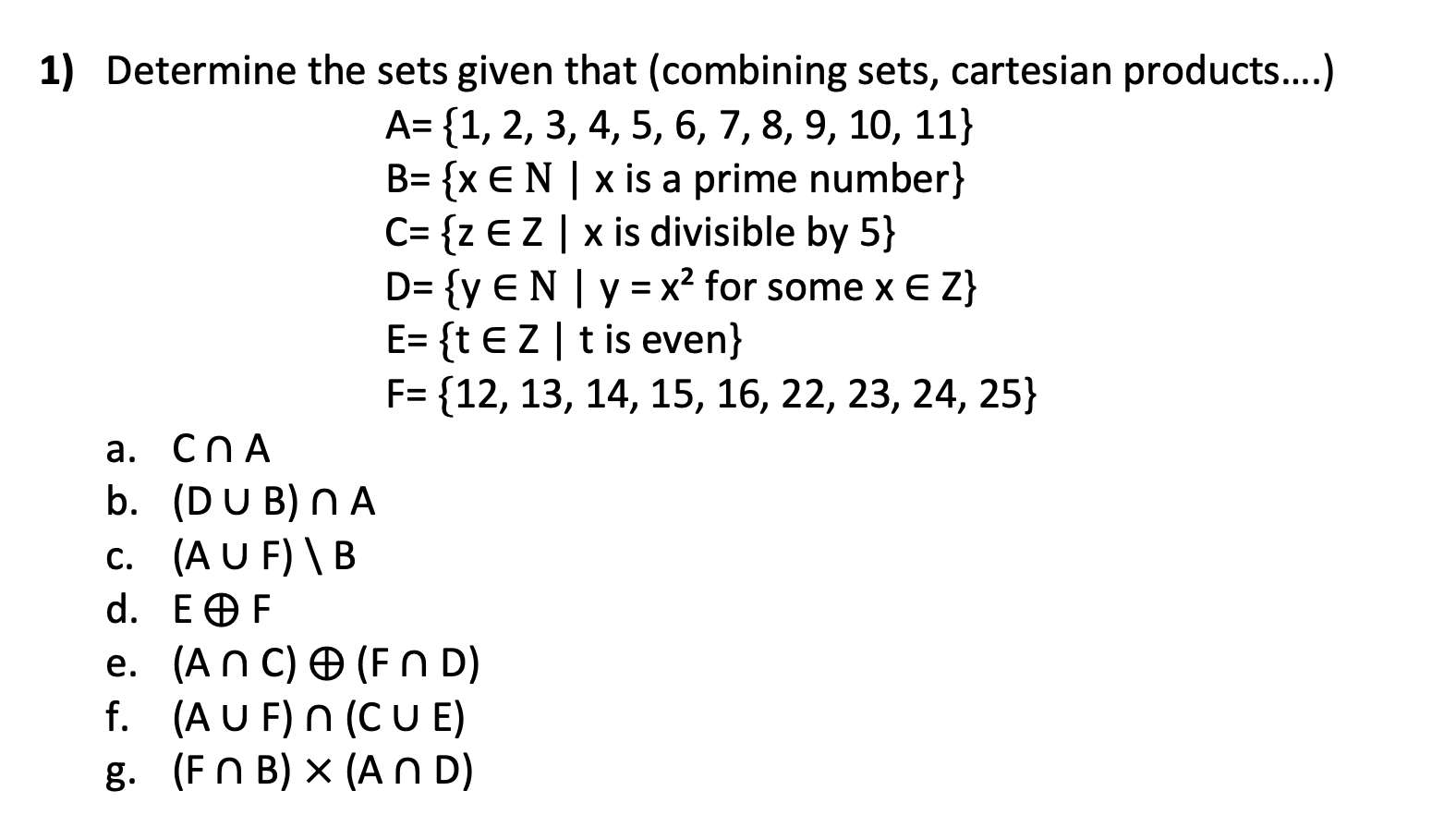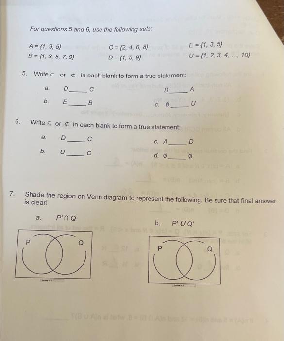 Solved SET OPERATIONS Find the answer on the given sets | Chegg.com