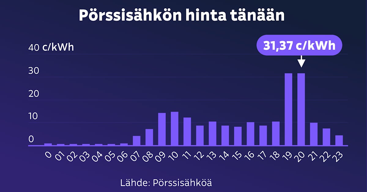 Pörssisähkön hinta nousee illalla 31 senttiin kilowattitunnilta ...