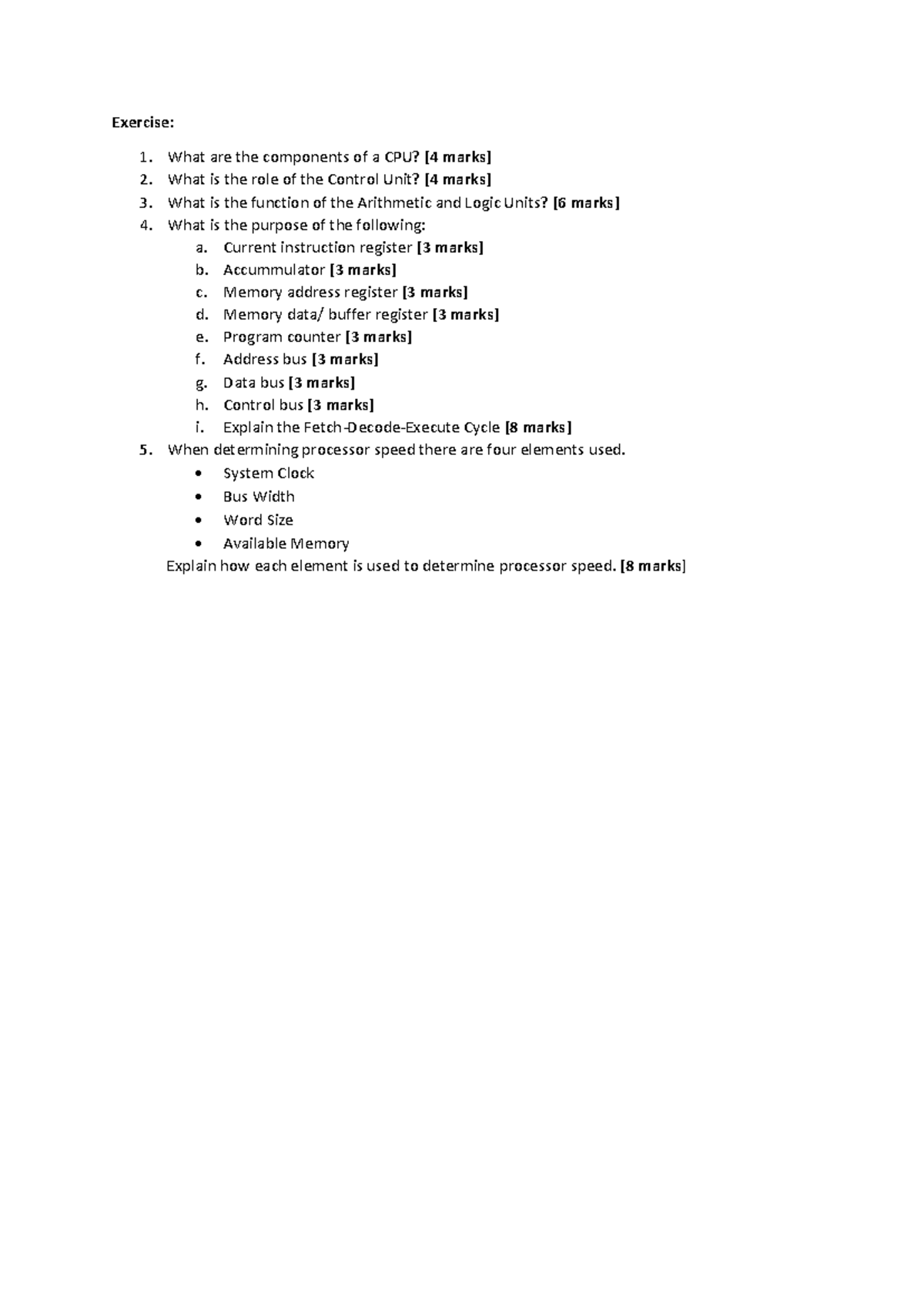 Exercise 1 - Exercise: 1. What are the components of a CPU? [4 marks] 2 ...