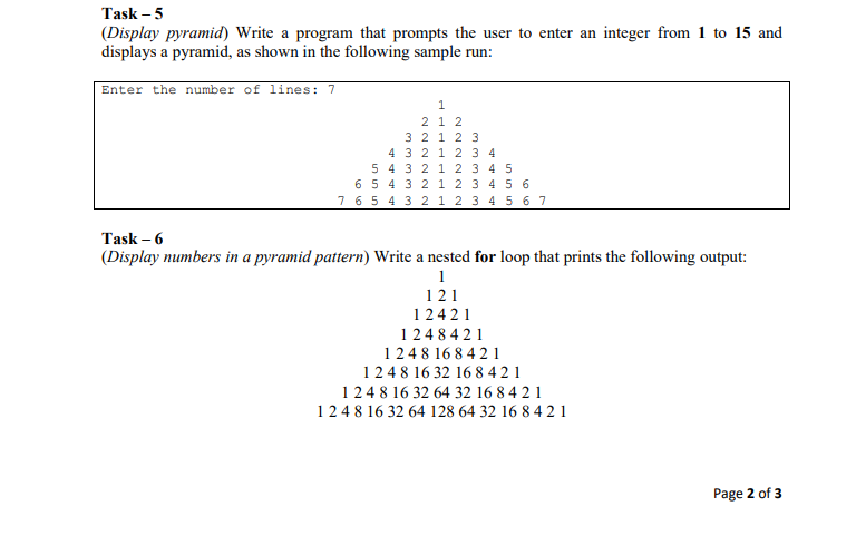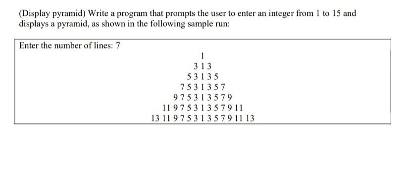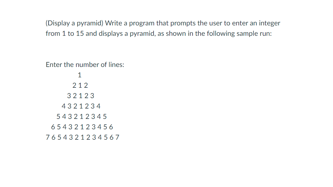 Solved Task-5 (Display pyramid) Write a program that prompts | Chegg.com