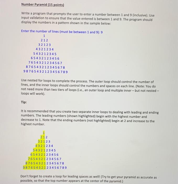 Solved Number Pyramid (15 points) Write a program that | Chegg.com