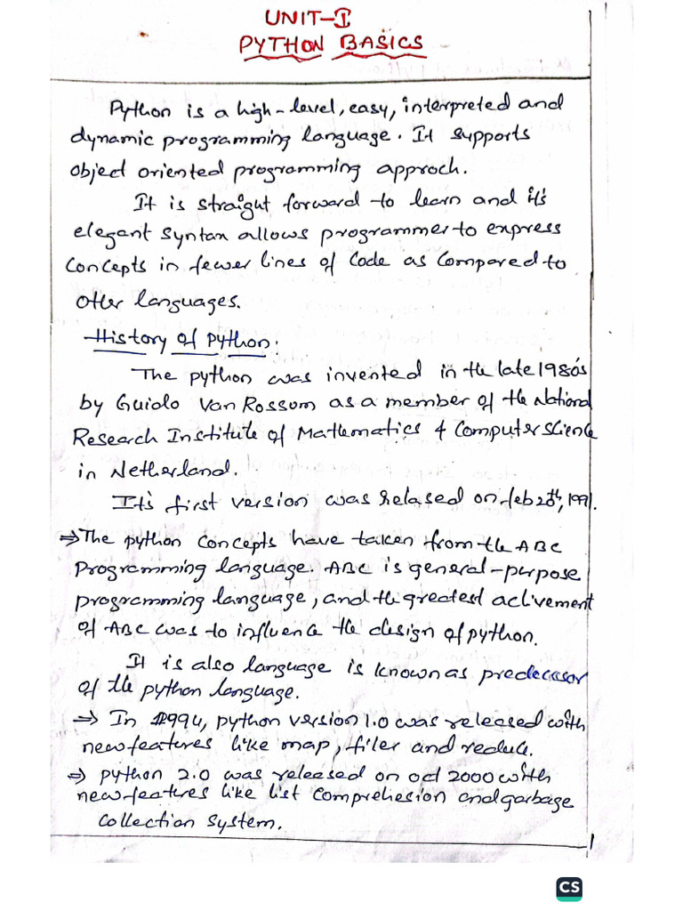 Based on this image's title: “Handwritten Python Notes pdf free download for beginners