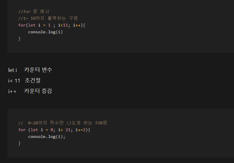 JavaScript(자바스크립트) FOR 문 , 무한루프