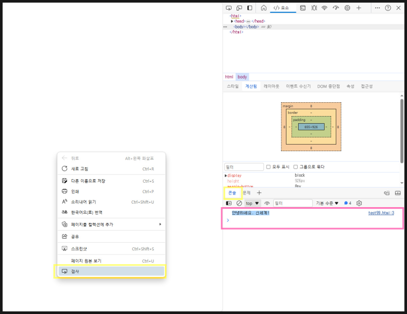 [JavaScript] "안녕하세요, 자바스크립트!"