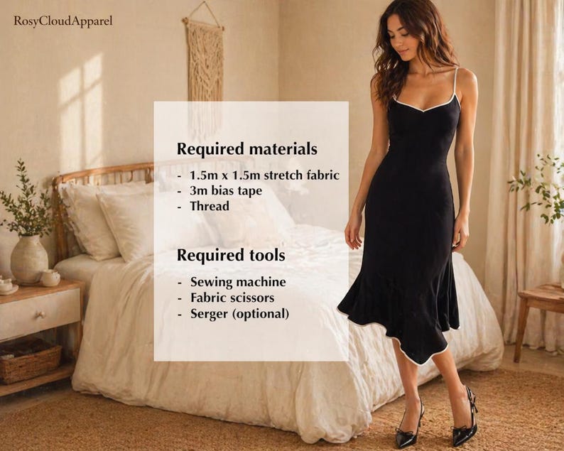 Slip Dress Sewing Pattern PDF | Elegant Midi Dress DIY Tutorial | Bias ...
