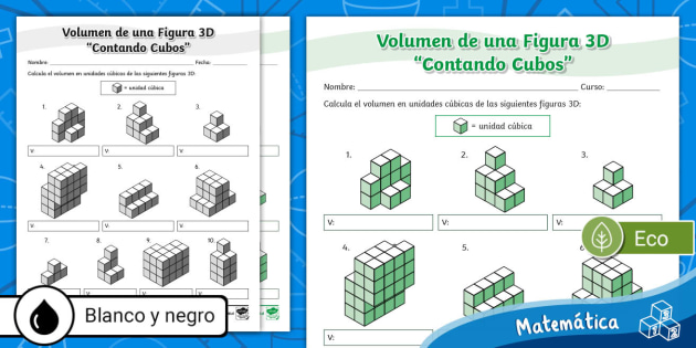 Hoja De Trabajo Sobre El Volumen De Cubos Hoja De Trabajo De Volumen