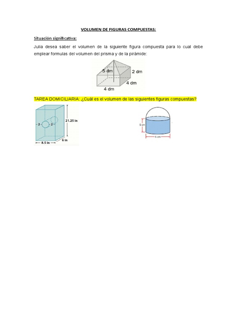 Based on this image's title: “Hoja De Trabajo De Volumen De Figura Compuesta”