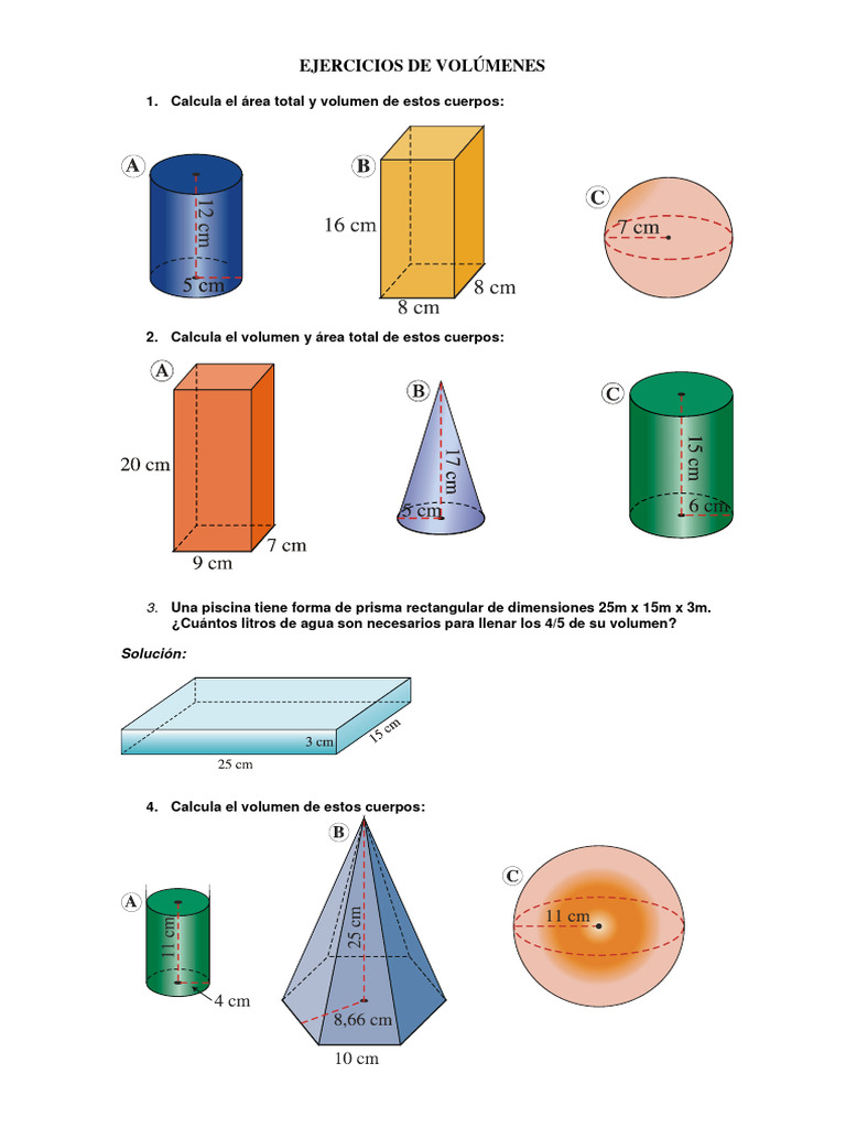 Hojas De Trabajo Sobre El Volumen De Figuras 3d