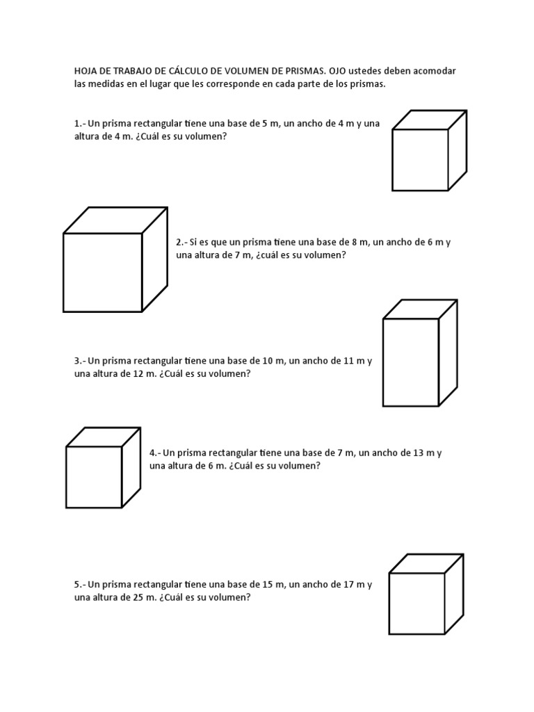 Hoja De Trabajo Del Volumen Del Prisma Ejercicios De Volúmenes