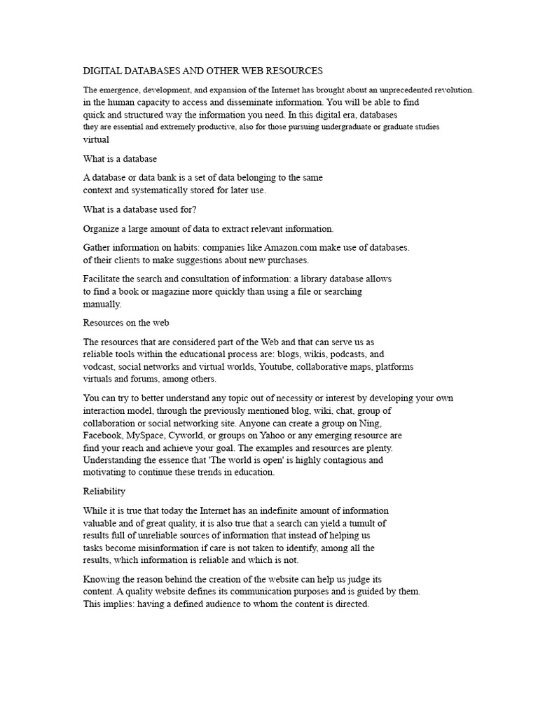 Digital Databases and Other Web Resources | PDF