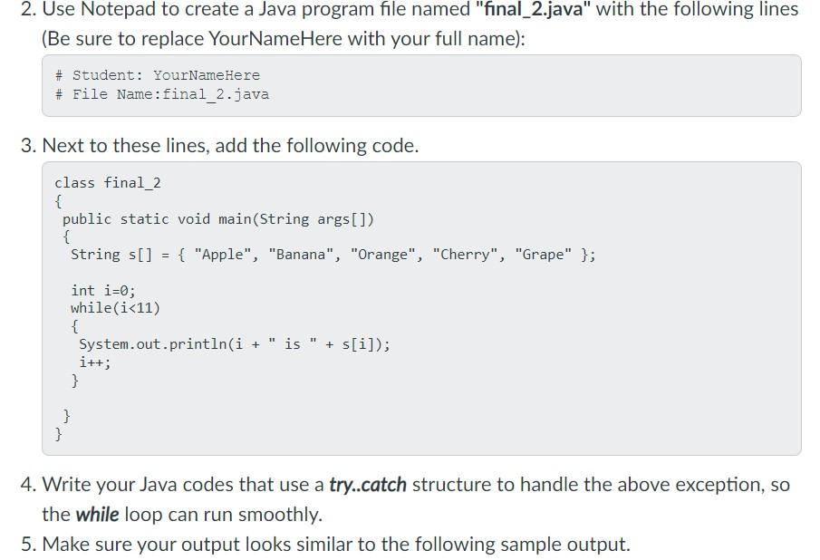 Solved 2. Use Notepad to create a Java program file named | Chegg.com