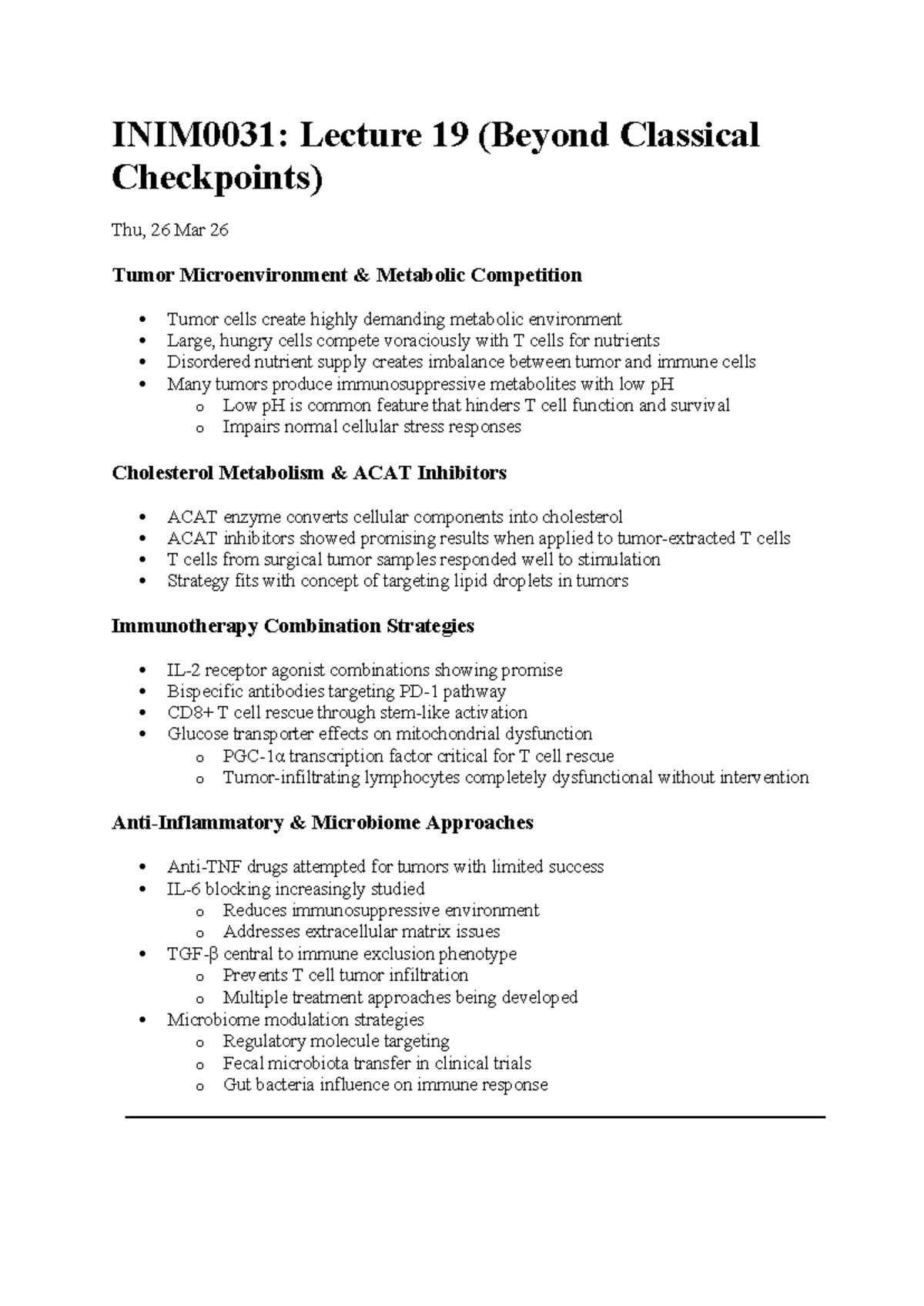 INIM0031: Lecture 19 - Tumor Microenvironment & Metabolic Competition ...