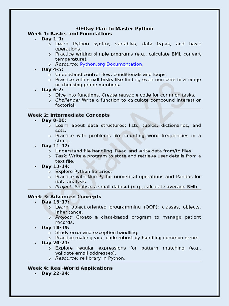 Based on this image's title: “30-Day Plan To Master Python | PDF | Python (Programming Language ...”