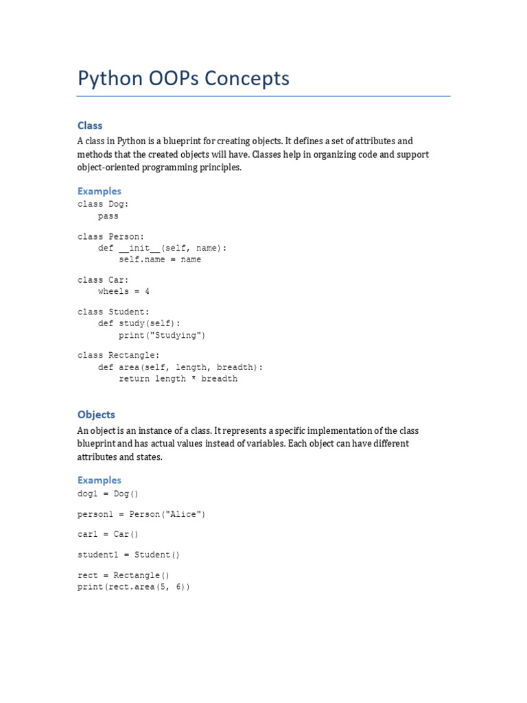 Python OOPs Concepts Class and Object and Inhertance Abstraction | PDF ...