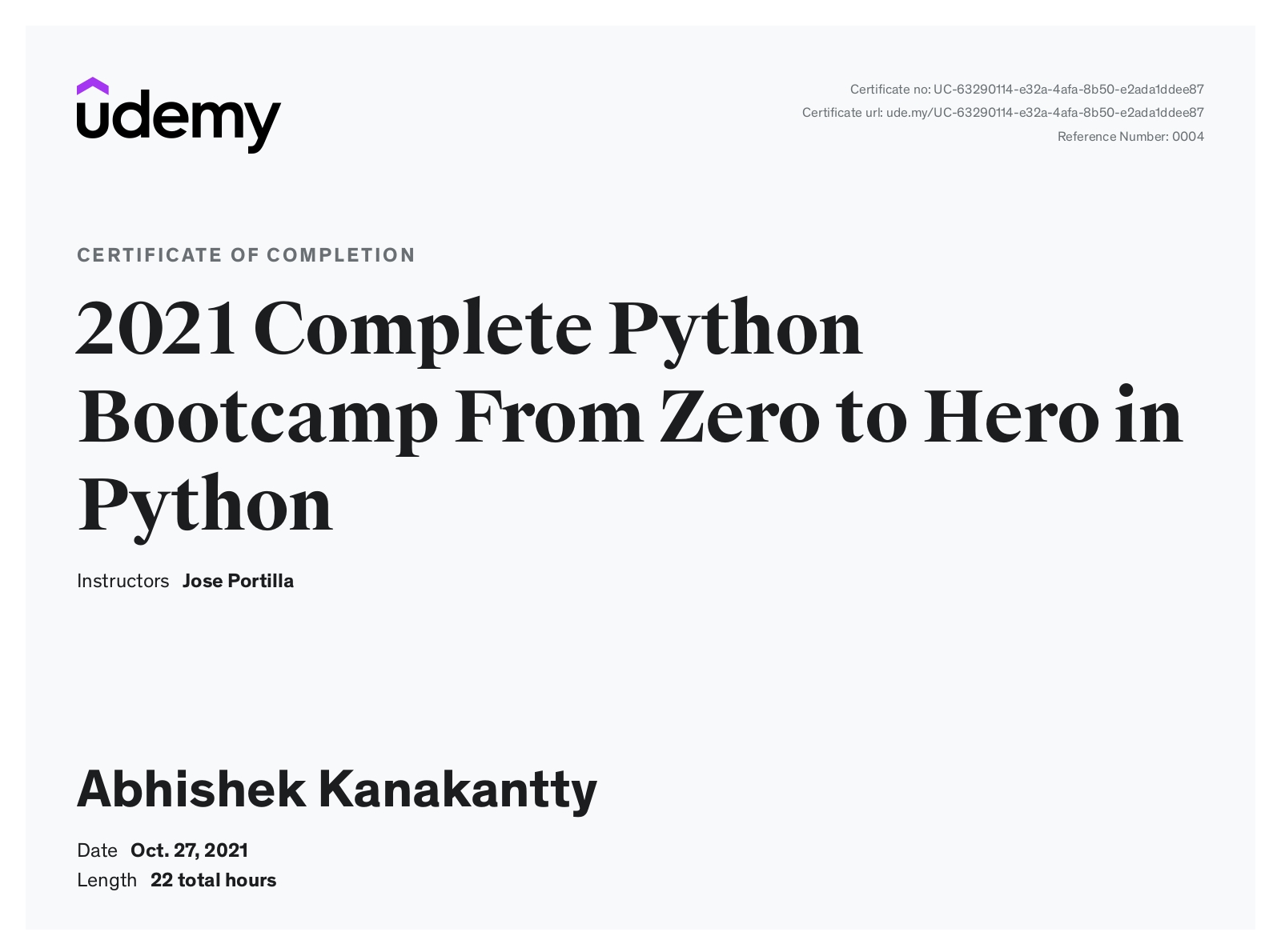 Completed "Python course on Udemy" | Pranav Karthikeyan posted on the ...