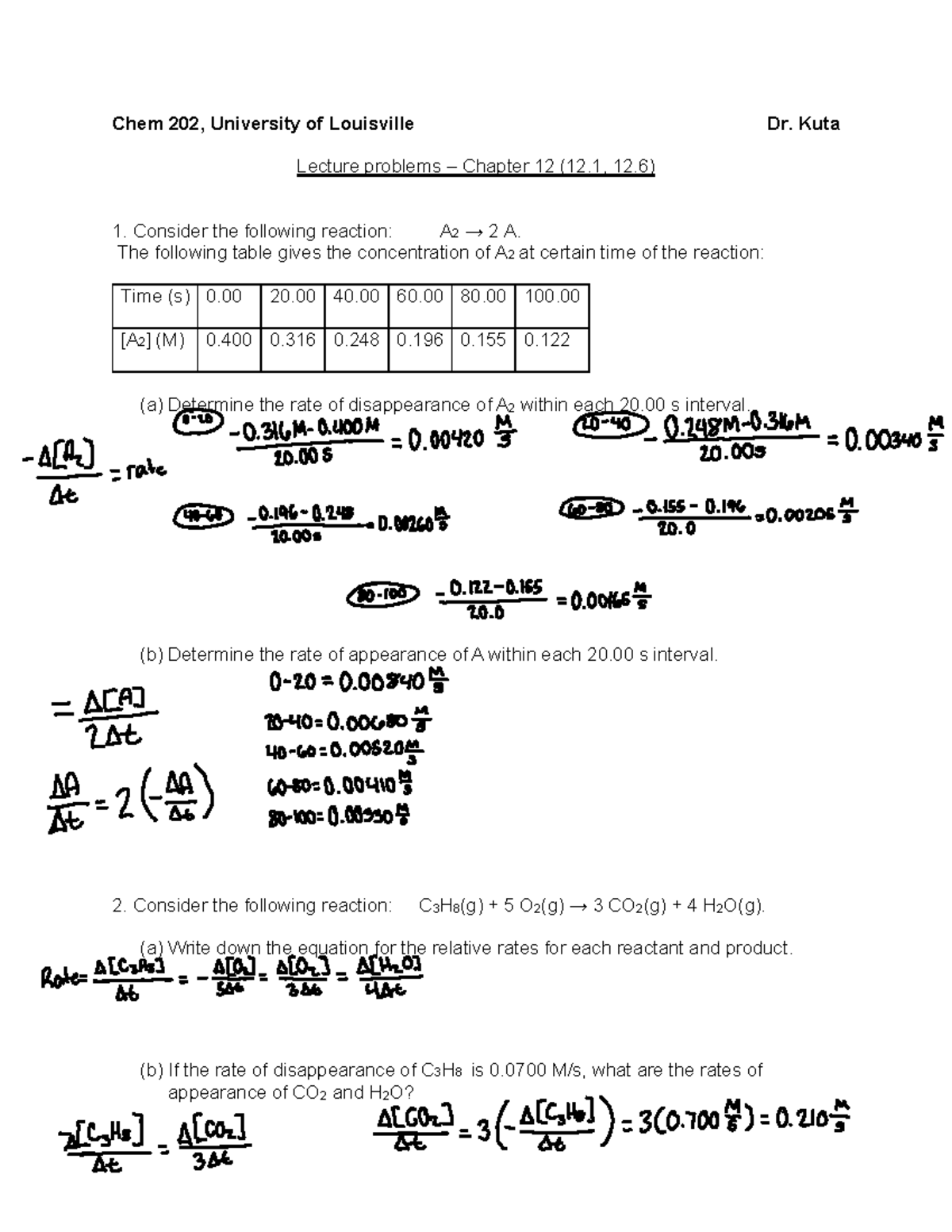Chem 202 - Spring 2026 Lecture Problems: Chapter 12 (12.1, 12.6) - Studocu